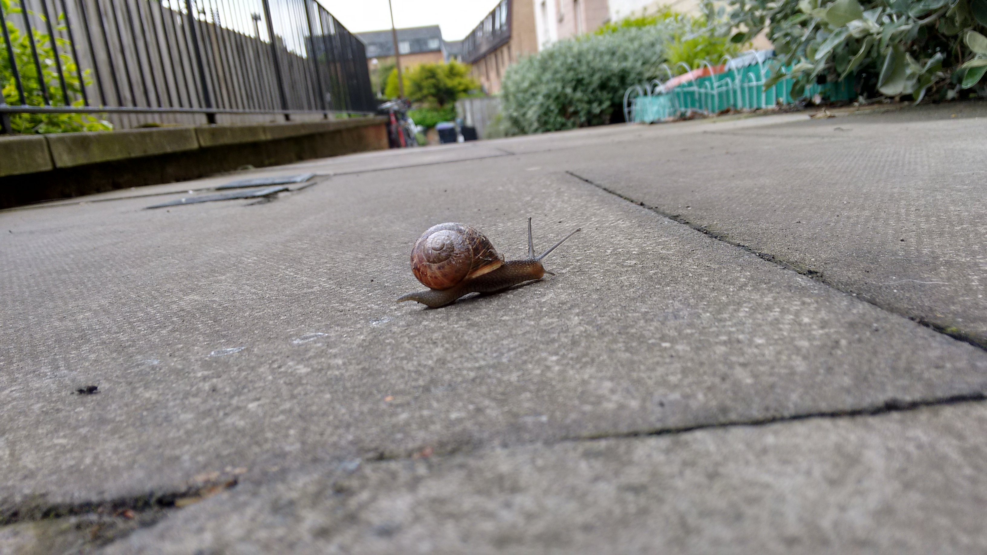 A snail travelling to its holiday destination (the garden). There is an adventurer in all of us.