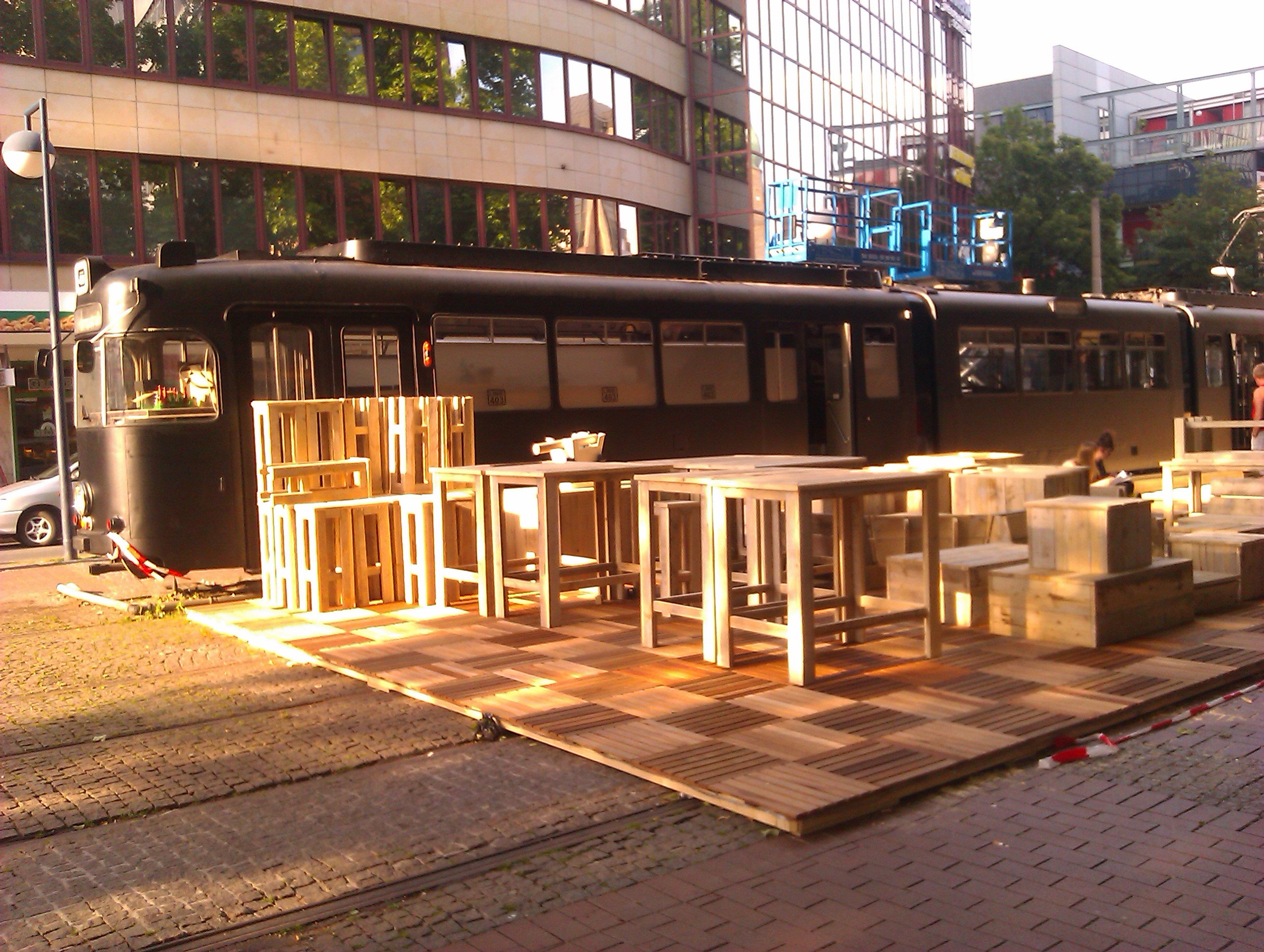 The A&O Dortmund Hauptbahnhof is a two-minute stroll from our bus stop at Hauptbahnhof. It’s your generic A&O, a bit sterile and impersonal but with all the expected mod cons, including a bar and a smoking area. And that’s what’s most important, really. Classy €4.99 bourbon is subsequently sourced from Aldi and then guzzled in the park, the heat beating down so intensely that the locals luxuriate shirtless in fountains, a kind of La Dolce Vita (1960) tribute sans Anita Ekberg (but with beer). The relaxed milieu is illustrated by a static city-centre tram experiencing a peculiar metamorphosis – construction workers slowly modify it … into a pub. It will be something.
