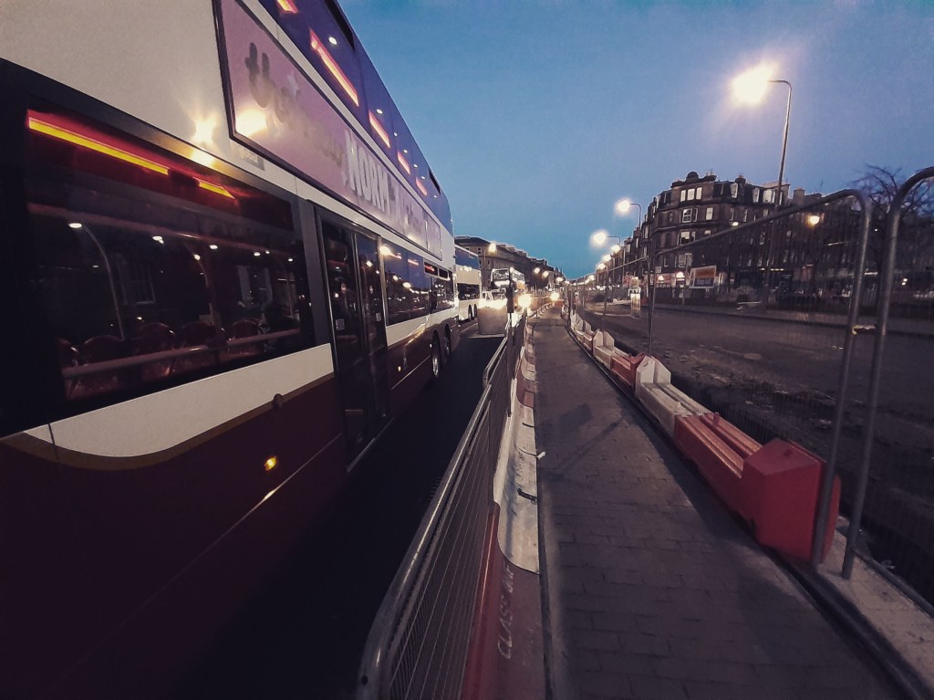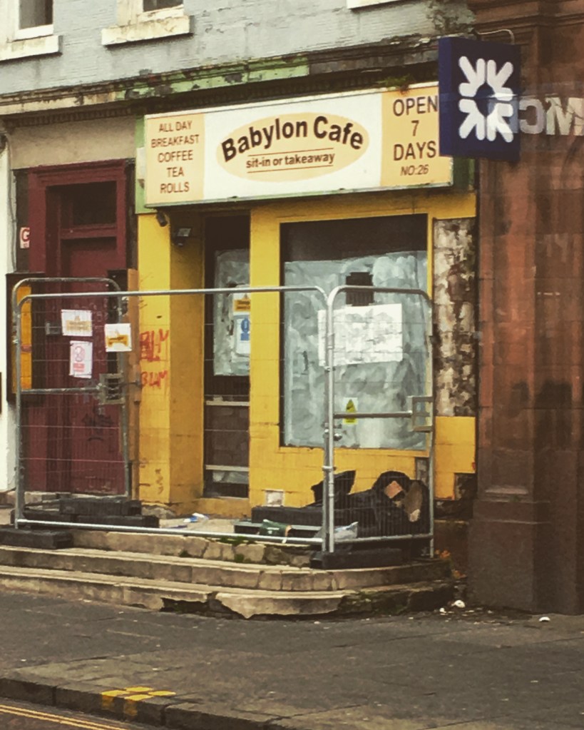 I’d like to think that the truly great François Truffaut would be disgusted with this sneaky snap I took from behind a bus window, a wee ‘Ned’ at the back of the vessel screaming into his mobile the pros of beating a rival thug into a “fuckin’ bin”.